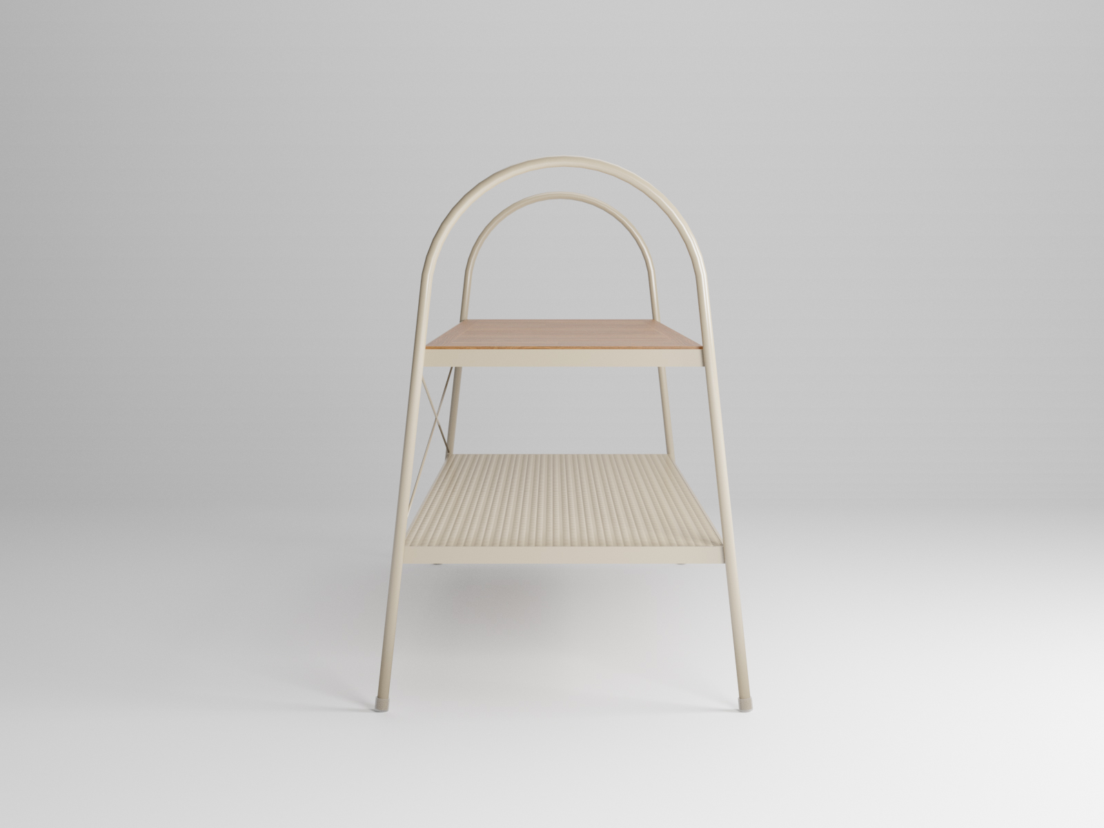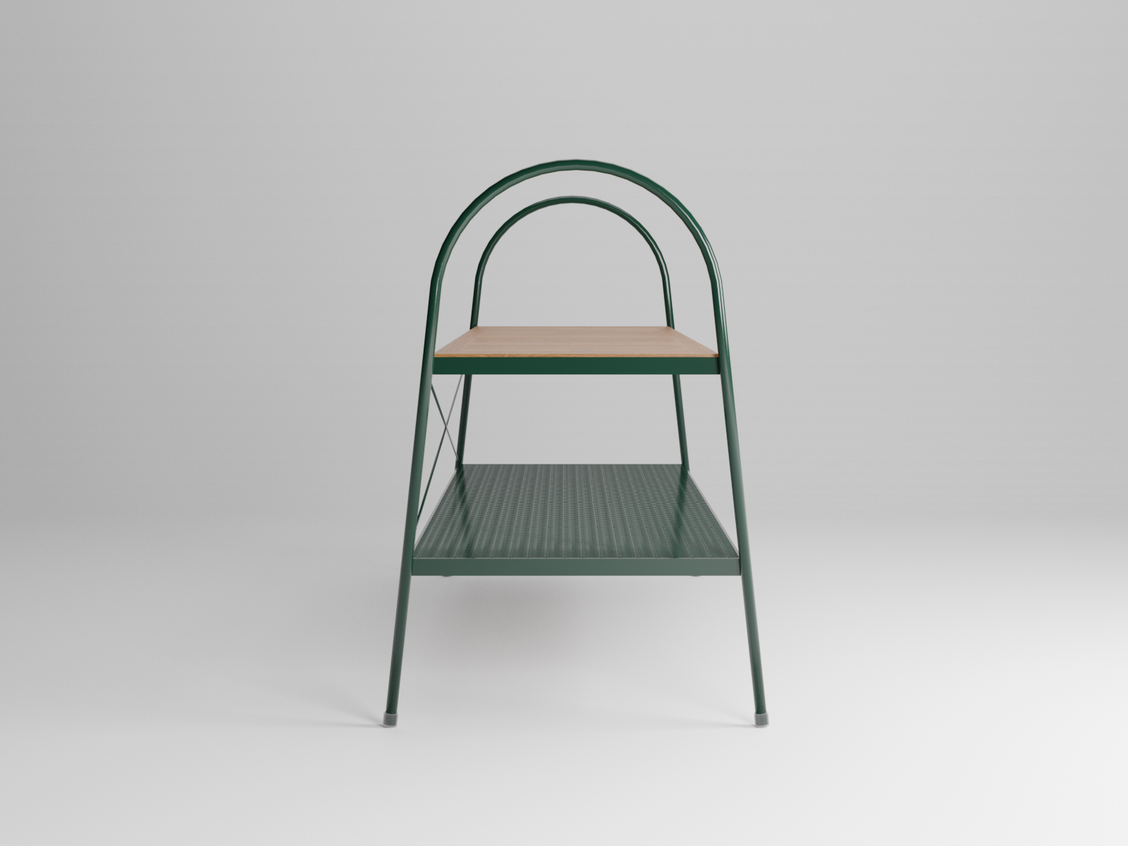L’acier est coloré à la peinture cuite et disponible en crème, noir, lilas, jaune ou vert. Le bois est protégé avec une finition naturelle à l’huile.
