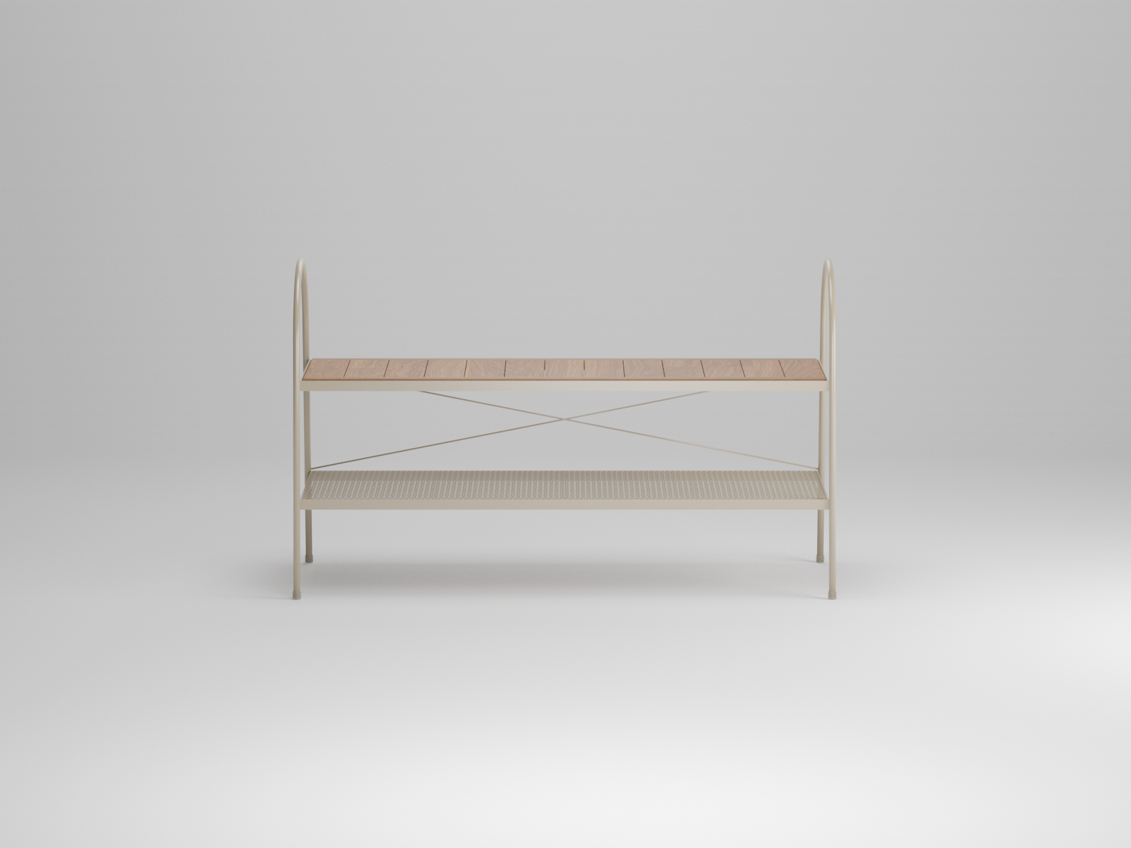 Librement inspiré du profil svelte, courbé et distinctif du marchepied Parvis, ce banc long est robuste et franchement pratique. Ses 2 niveaux, l’un pour s’asseoir ou poser un sac et l’autre offrant du rangement, ont des personnalités uniques. Un long plateau de chêne blanc plaqué pour le confort et en-dessous, une trame de tiges d’acier pour les chaussures. Les pattes, qui deviennent poignées dans le haut du meuble, permettent de déplacer la pièce avec aisance. Disponible dans nos 5 couleurs classiques: jaune, vert, lilas, noir ou crème.